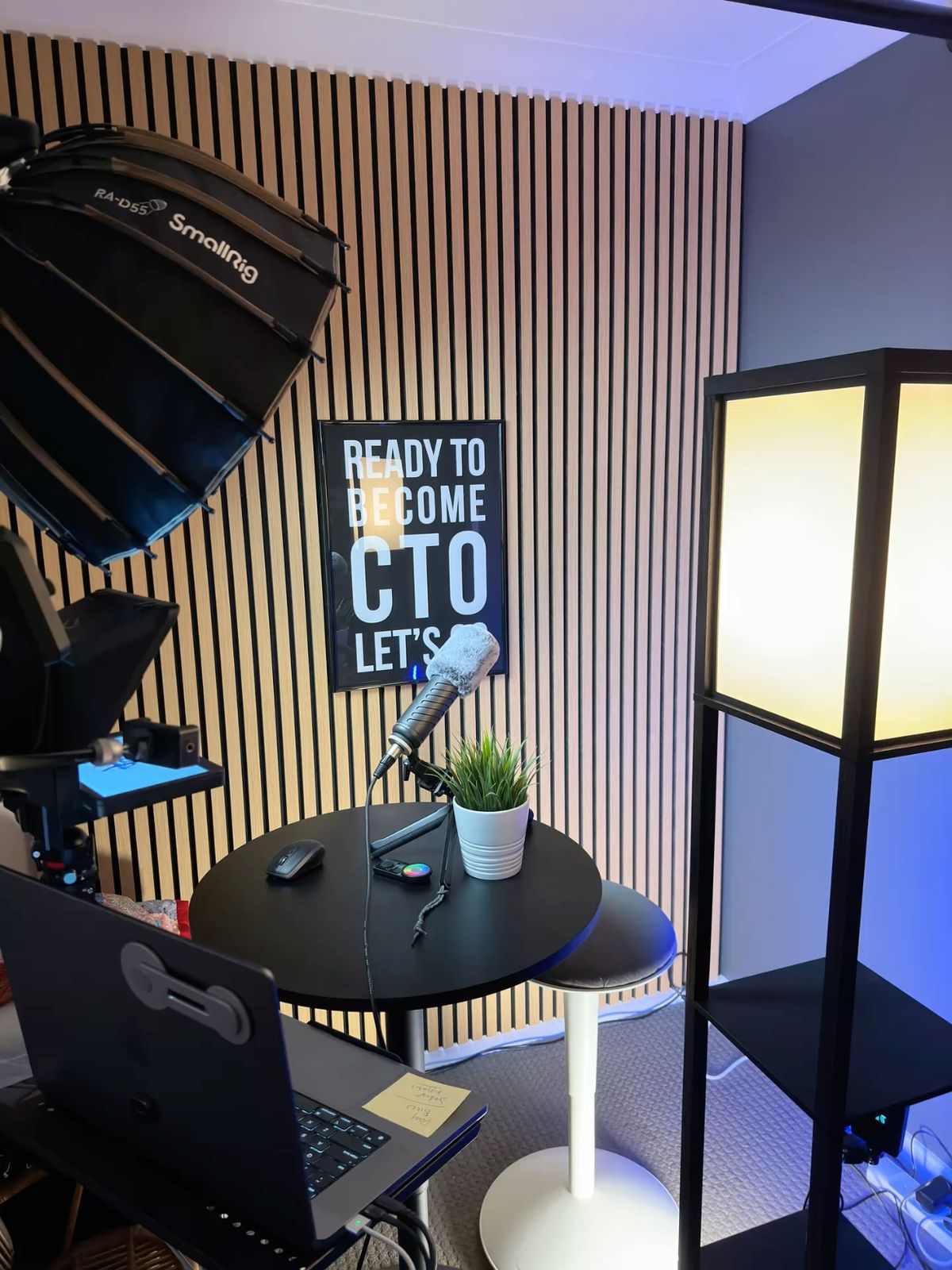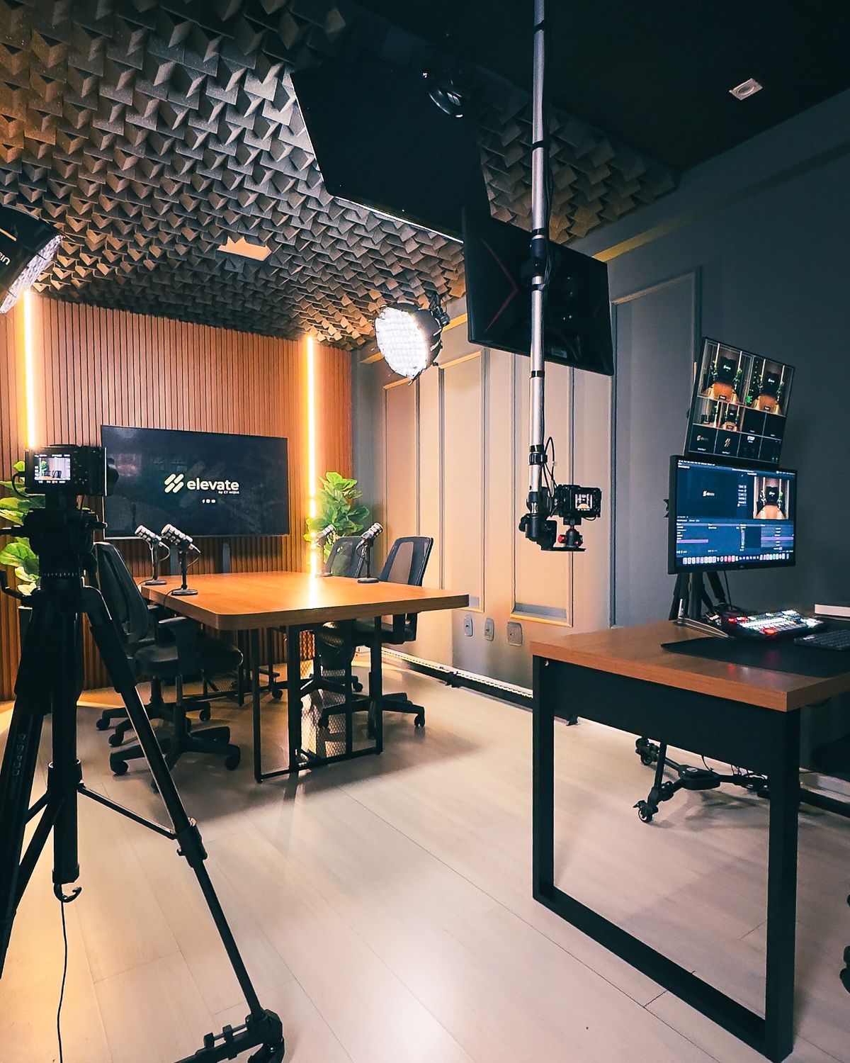 Siaran brand Anda terlihat lebih rapi, terang, dan menarik dengan pencahayaan dan perangkat audio visual yang lengkap.